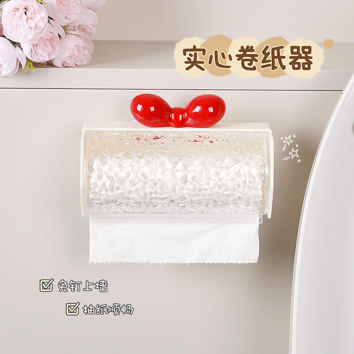 实心卷纸器卫生间纸巾架厕所收纳盒纸巾盒卷纸器小巧无芯卷纸盒子