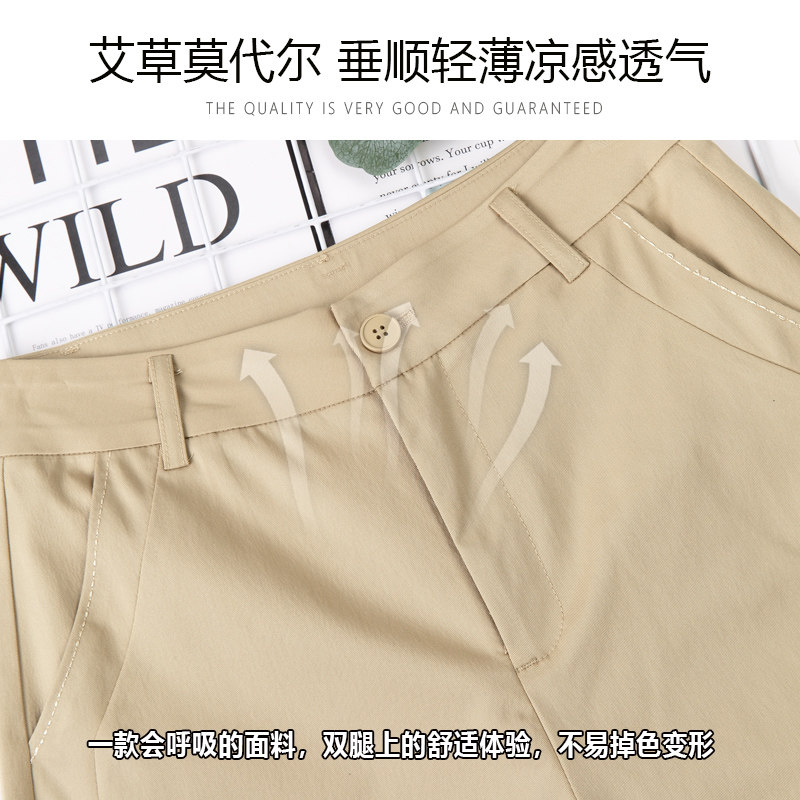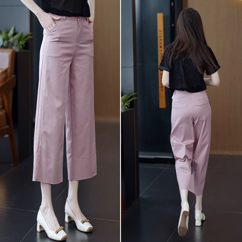 休闲阔腿裤 粉色莫代尔艾草九分直筒裤 垂感职业西装 薄款 女2026夏季