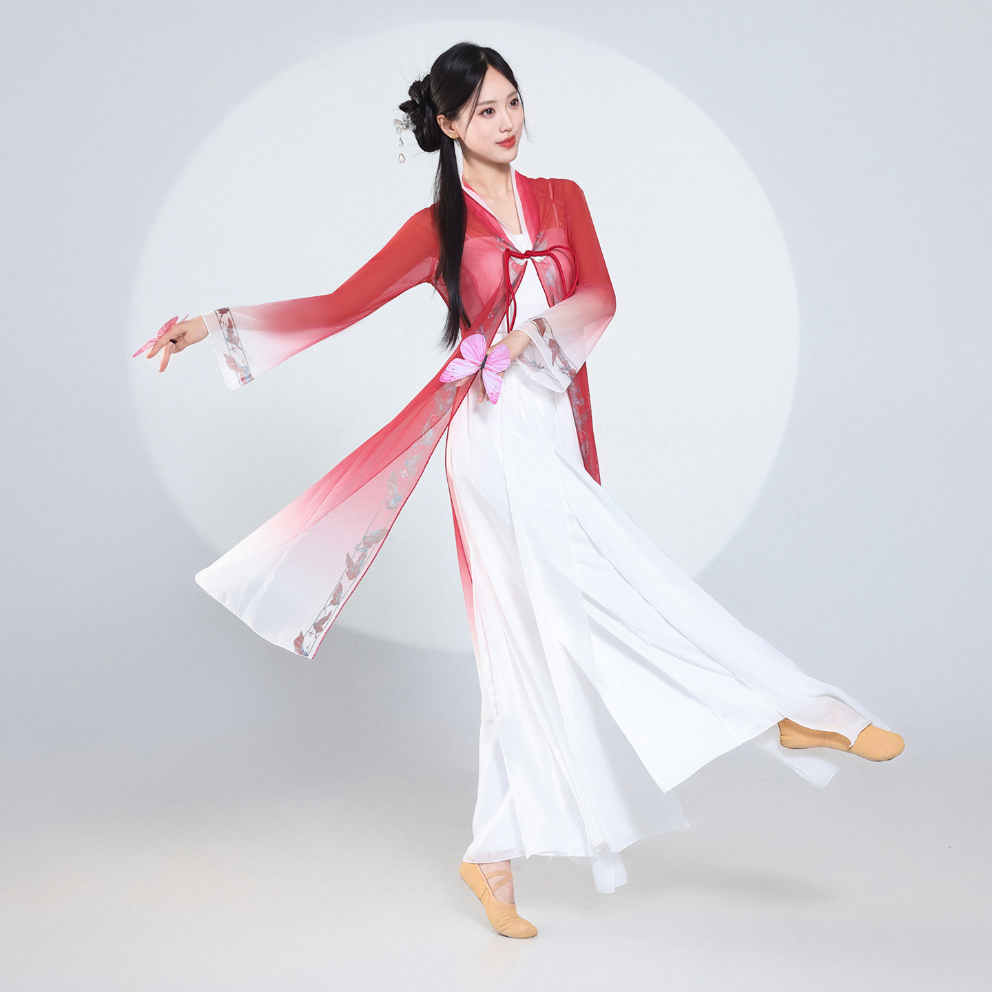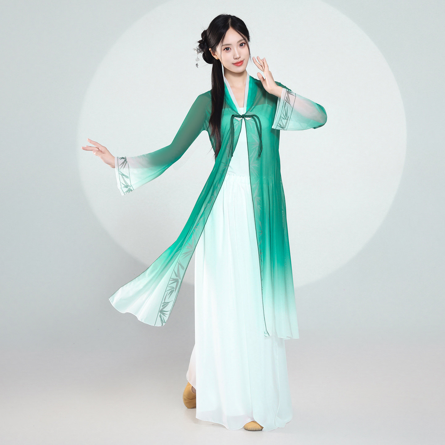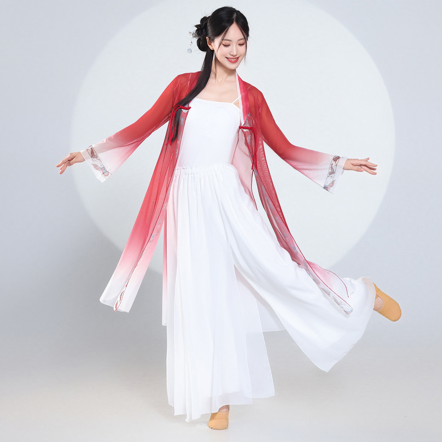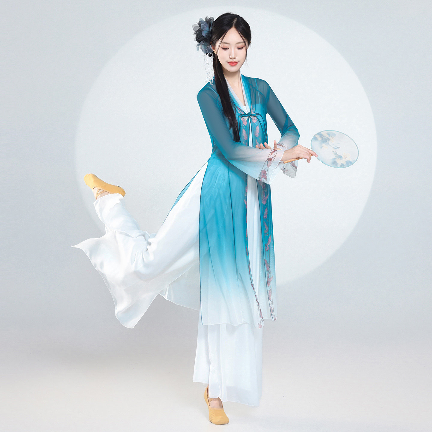 古典舞演出服女弹力修身 印花艺考练功服身韵纱衣民族国风 印花长款