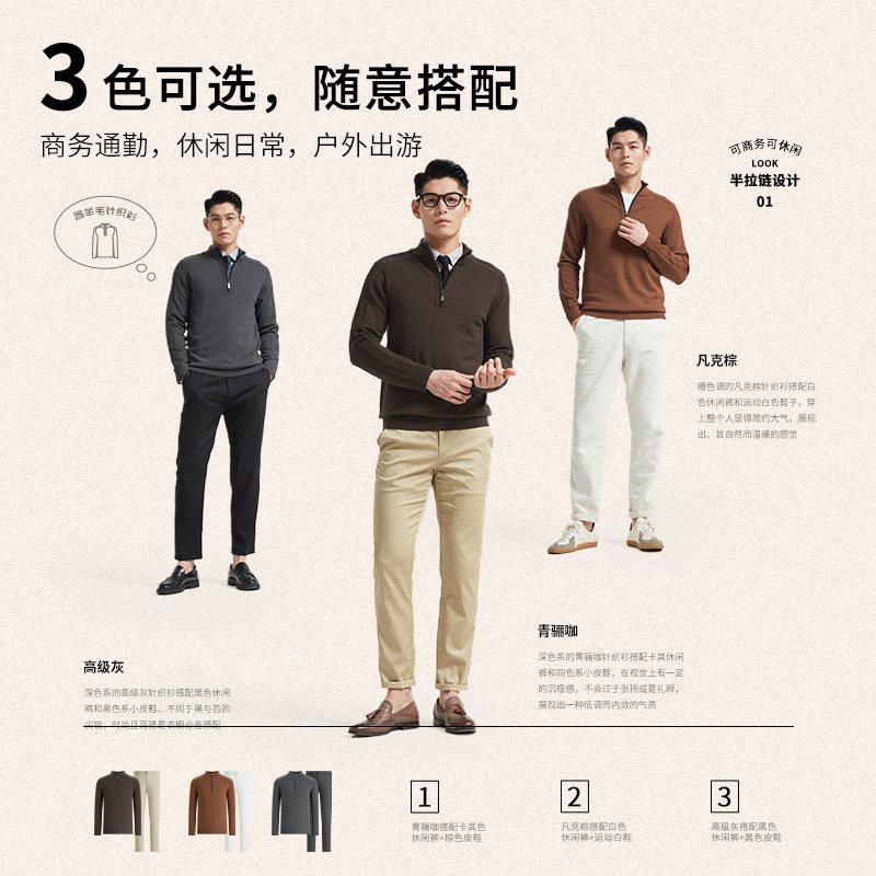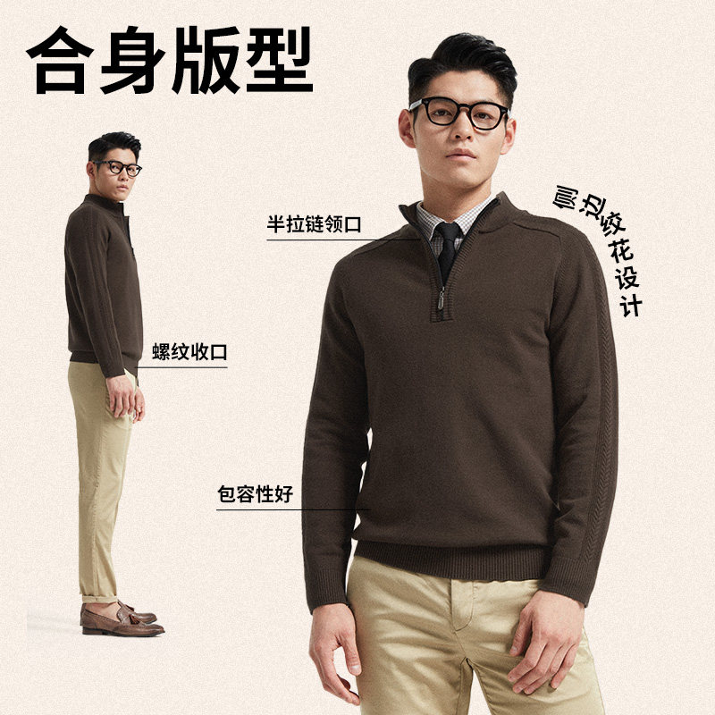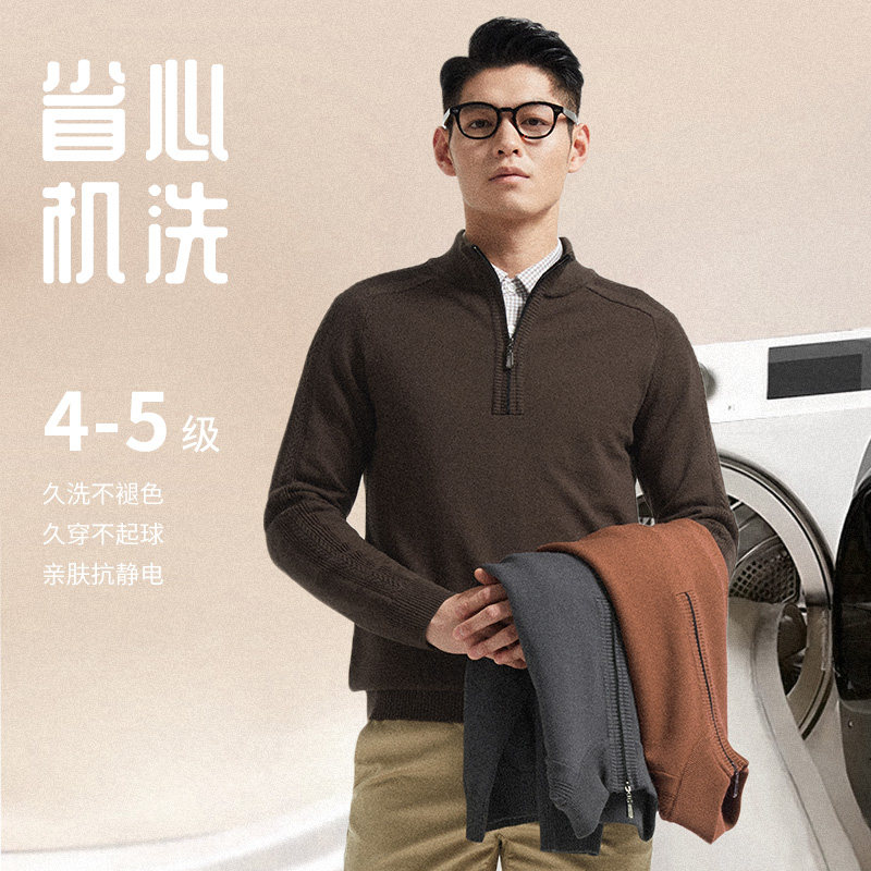 可机洗2025秋季 保暖上衣打底衫 新品 针织衫 半拉链男士 杉杉毛衣男款