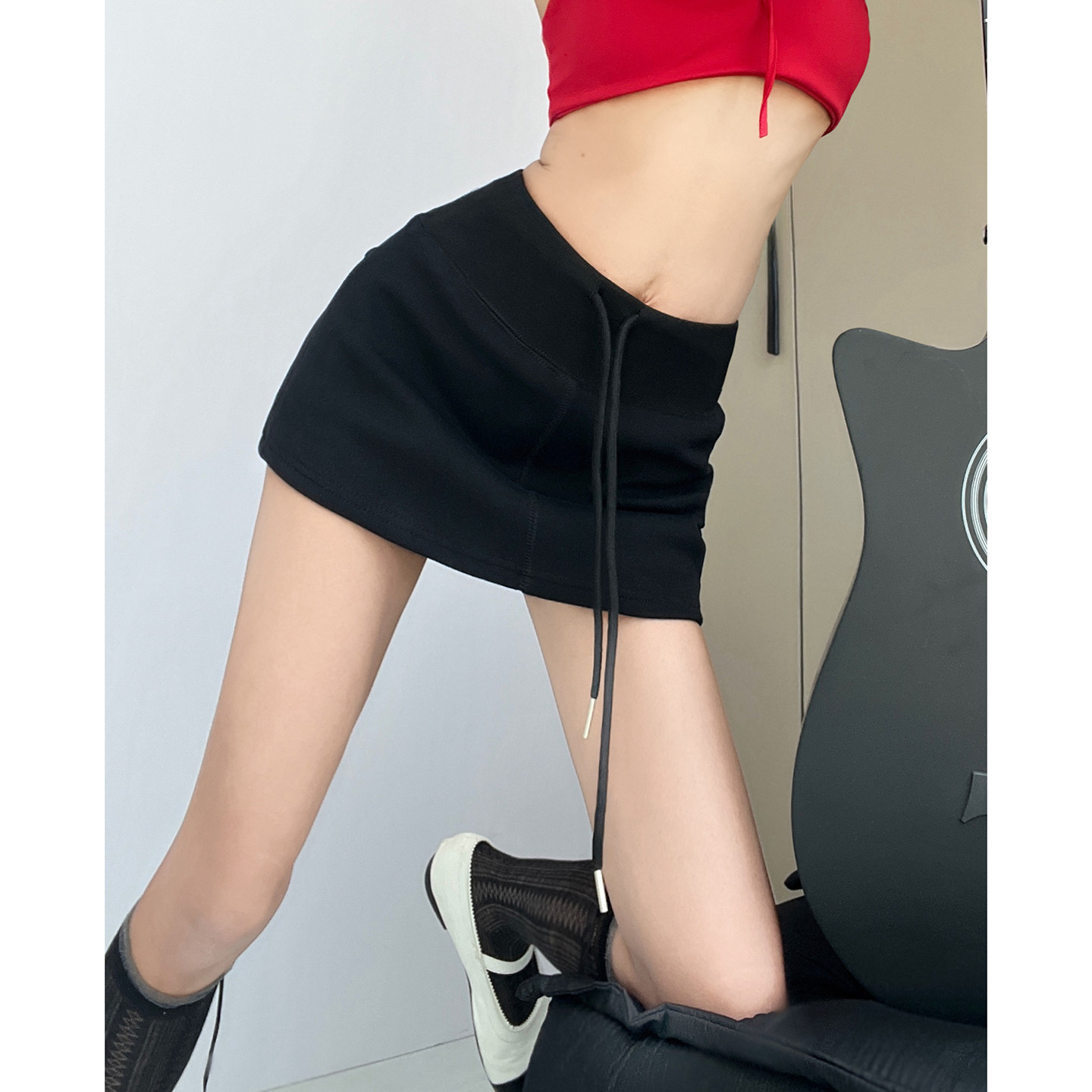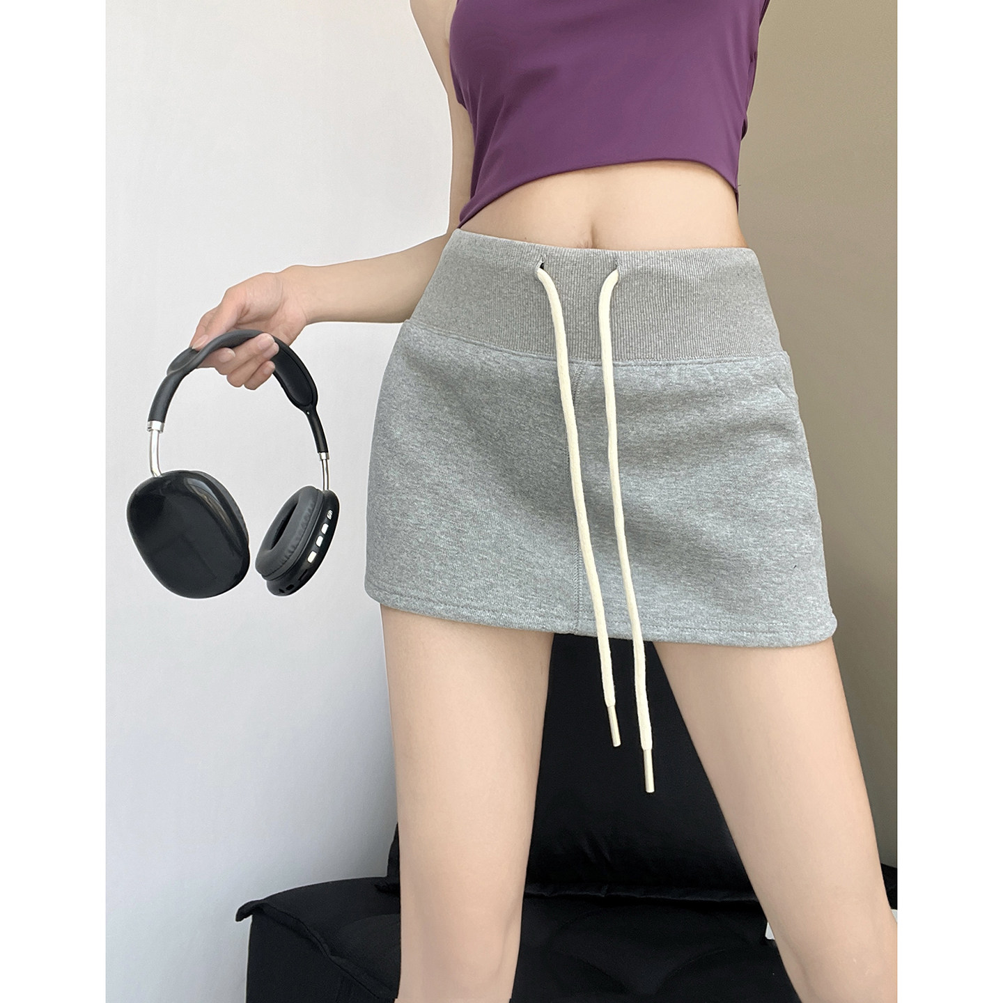 MianCun专机走线撞色美式 百搭半身裙 休闲卫衣短裙女自带安全裤