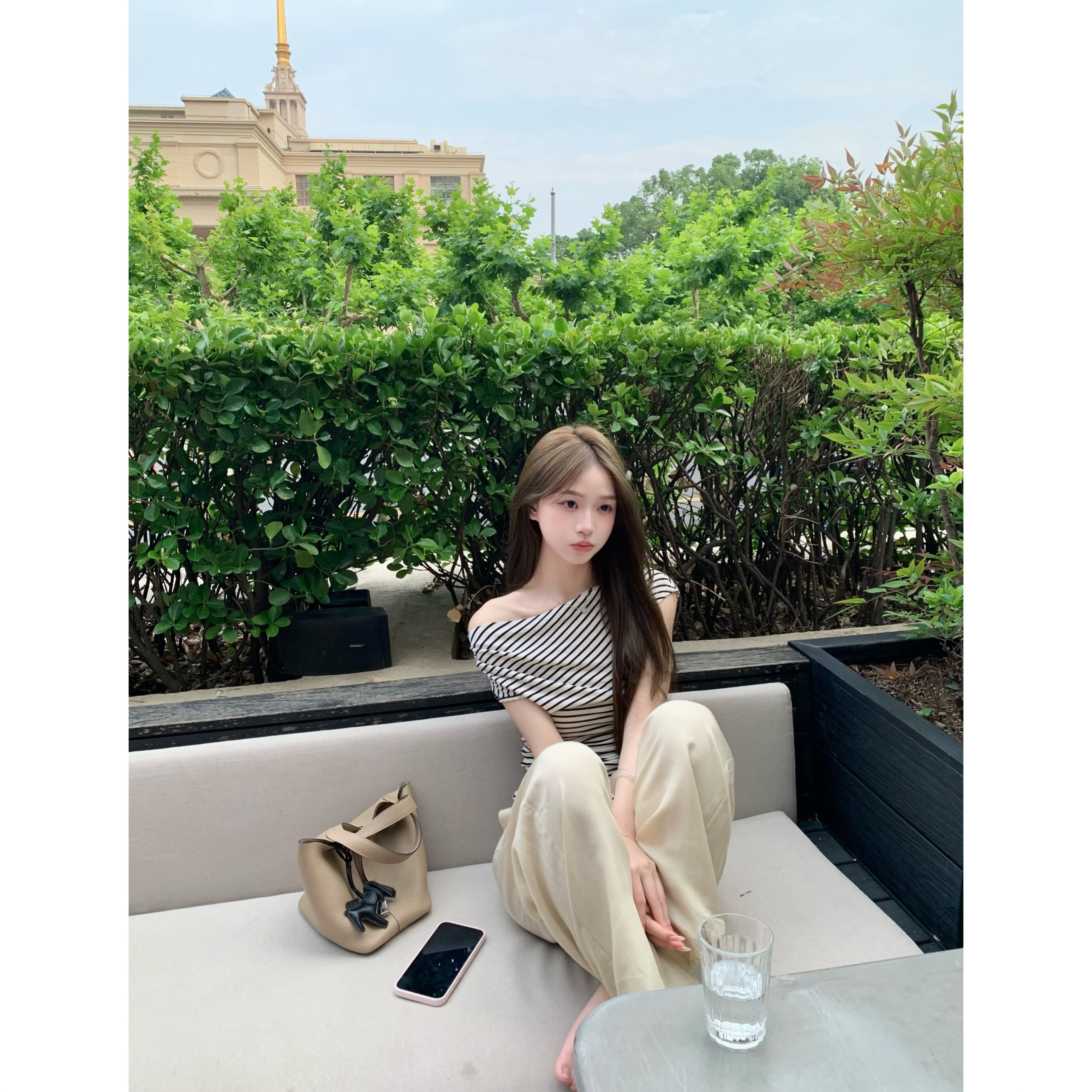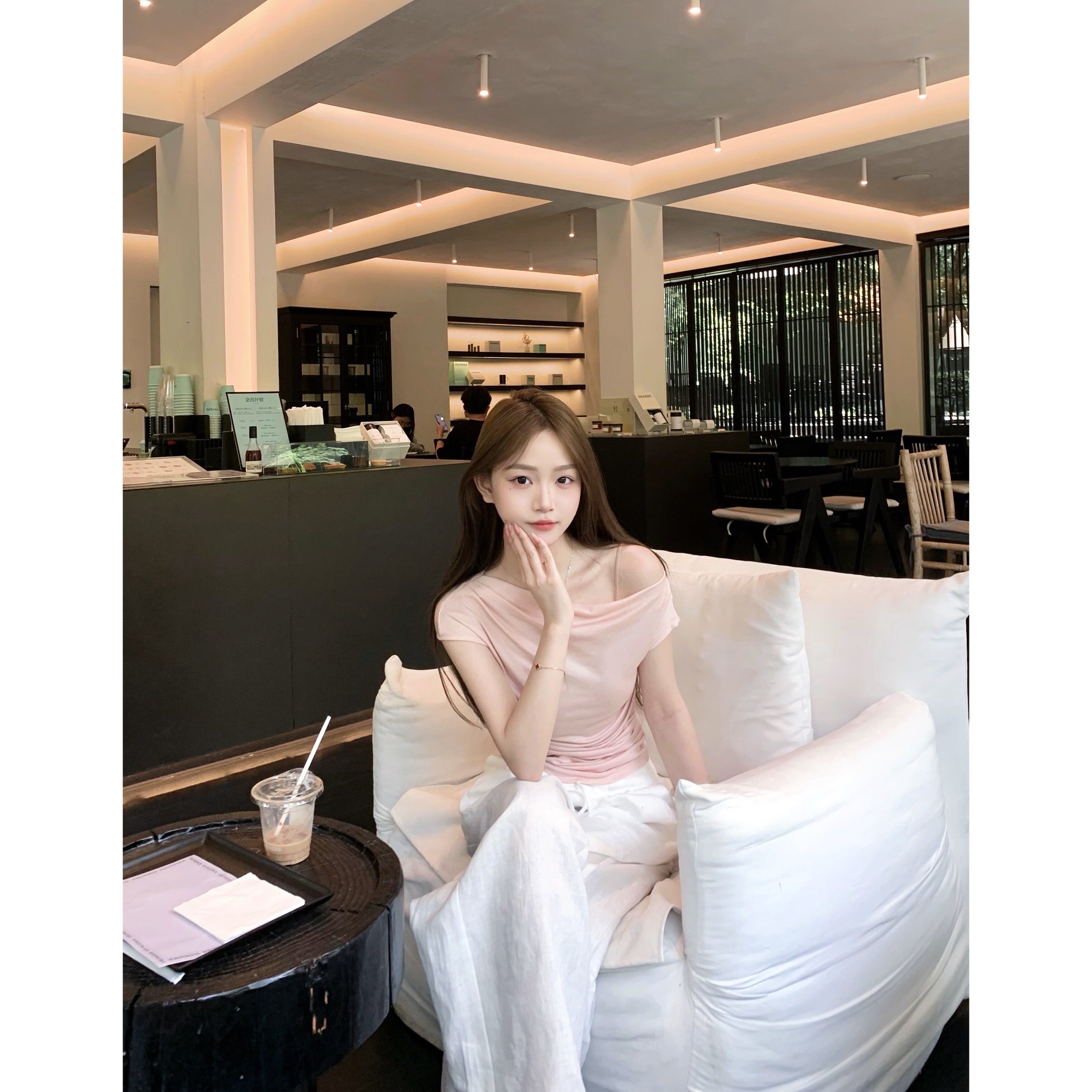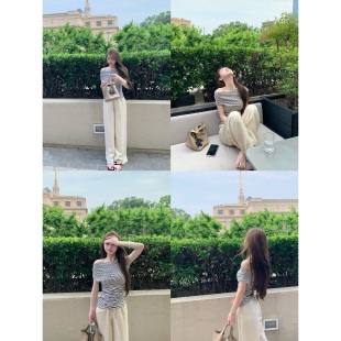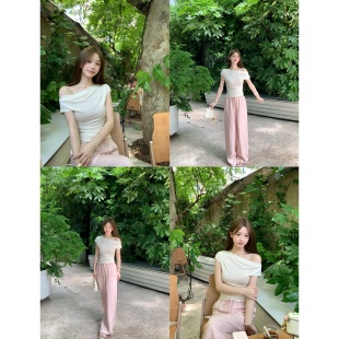 设计感上衣 2025新款 清仓特价 天丝羊毛斜肩收腰t恤女夏季