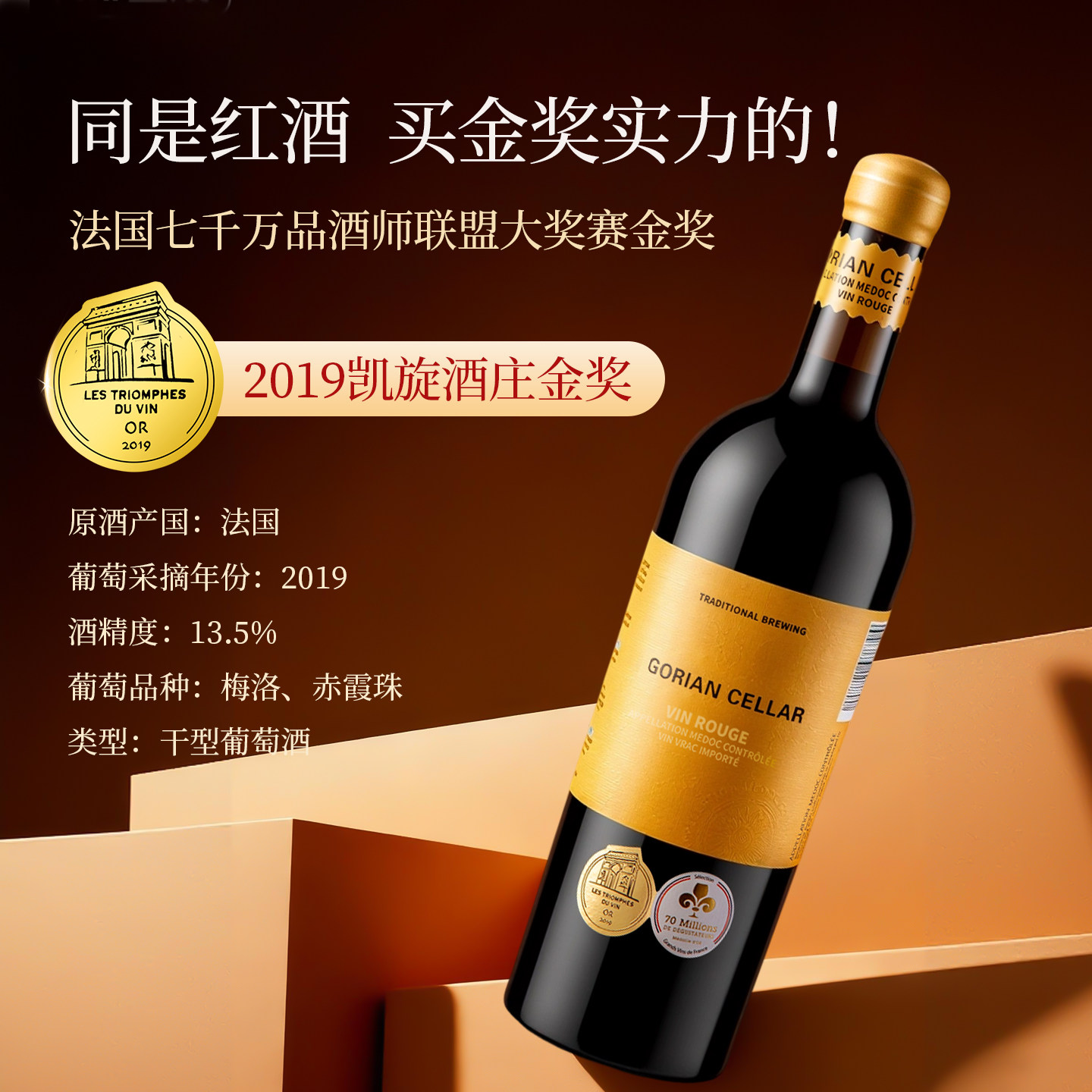 法国进口红酒官方旗舰店正品 14.5度国际金奖AOP级干红静态葡萄酒