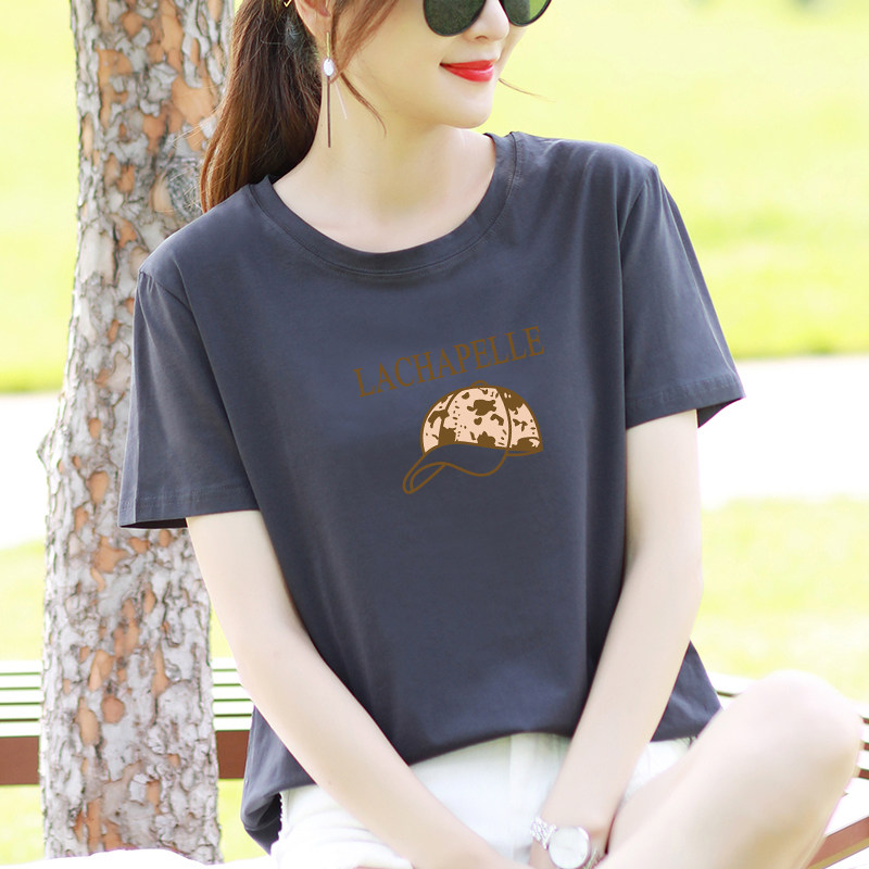 打底衫 洋气时髦半袖 宽松减龄百搭上衣 t恤女夏季 山东即墨纯棉短袖
