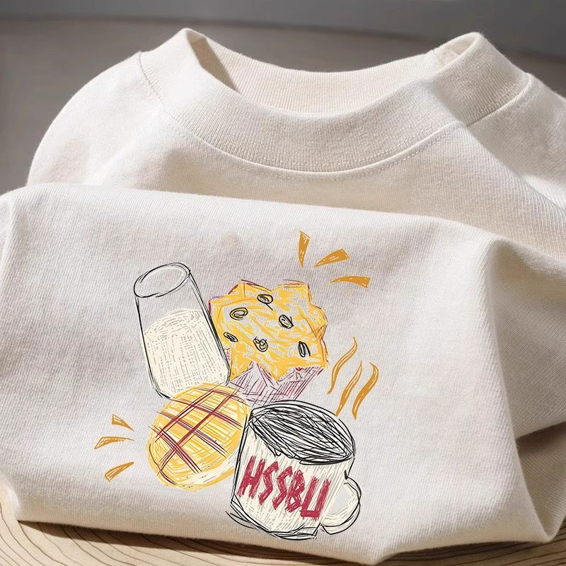 广州十三行外贸订单 T恤男女宽松上衣 潮流设计感小众印花纯棉短袖
