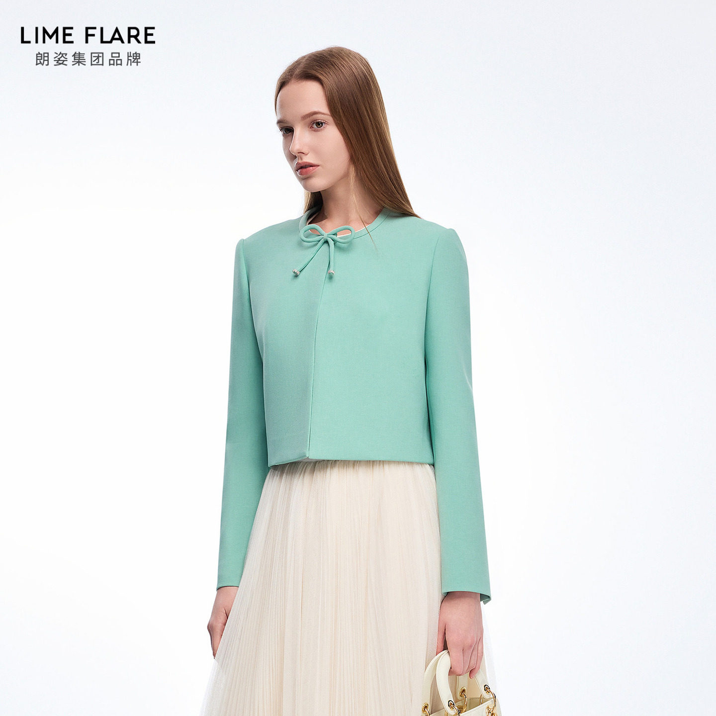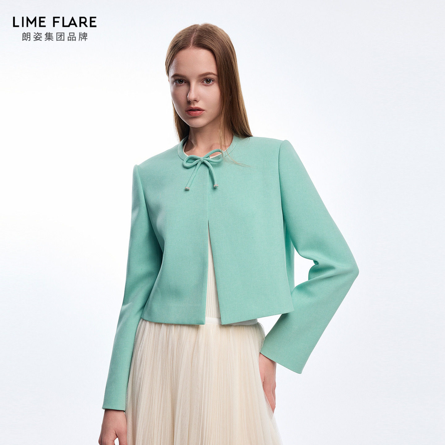 外套 短外套水绿色蝴蝶结短款 莱茵福莱尔2025年春季 新款