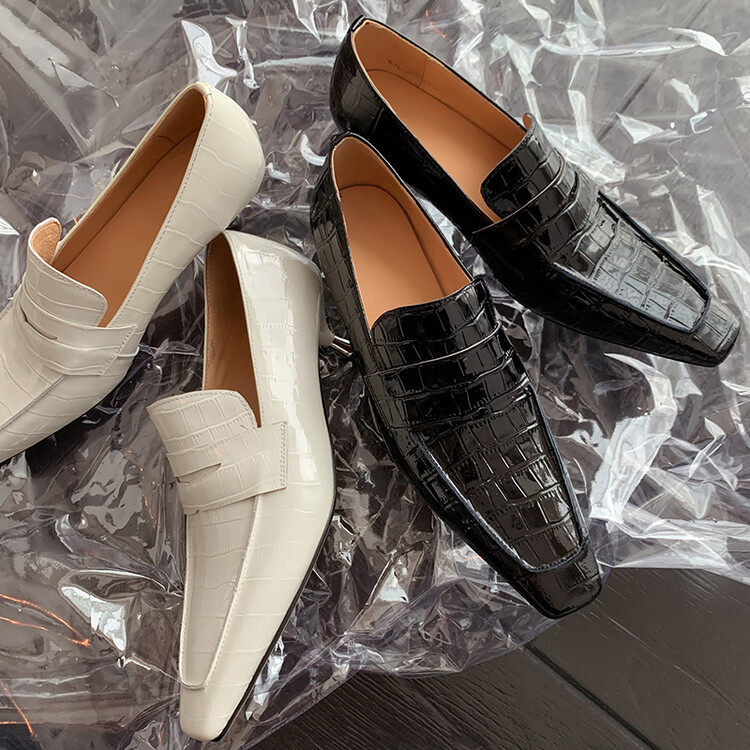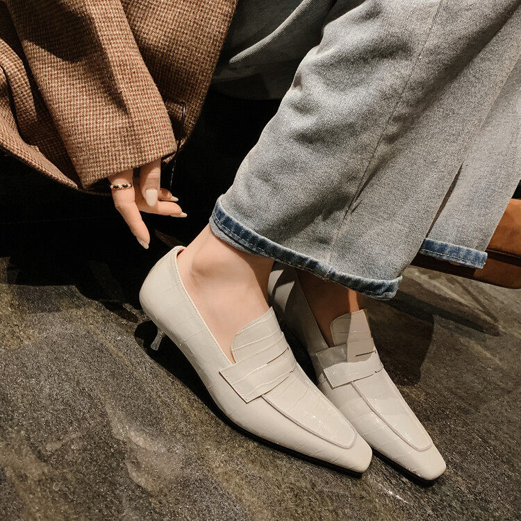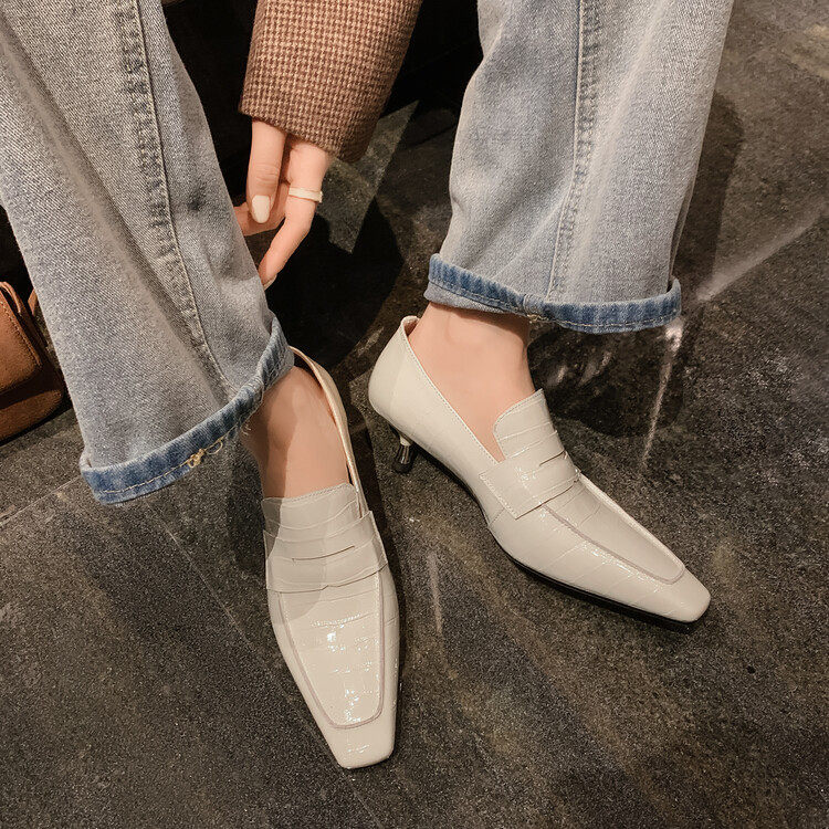 avance 5cm方头皮鞋 真皮法式 女新款 子白色乐福 复古英伦风春秋季