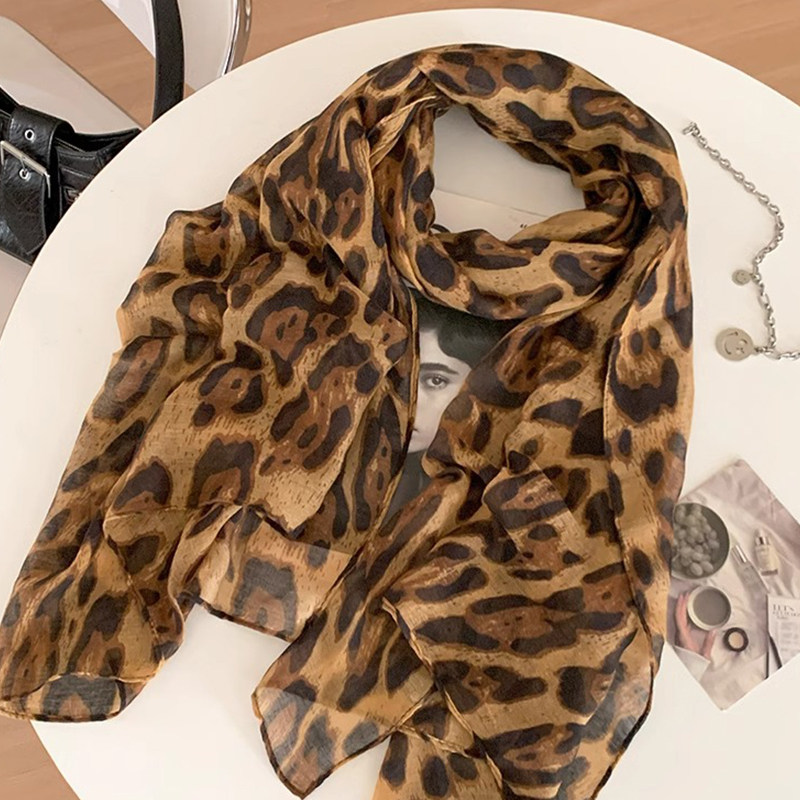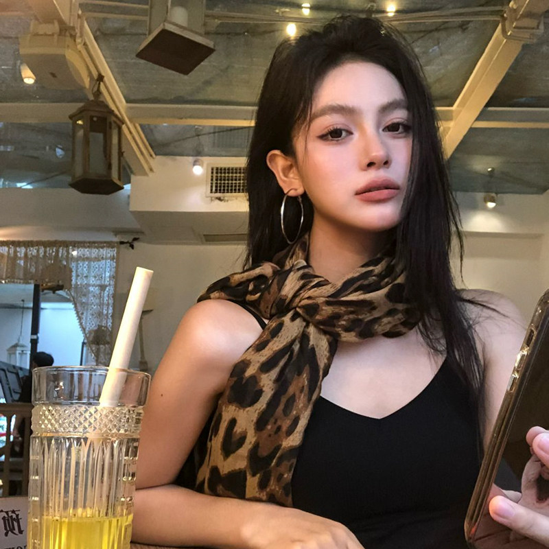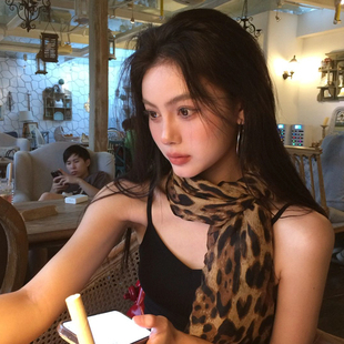 复古辣妹风豹纹丝巾女2025新款 围巾 高级感性感纯欲风系脖领巾薄款