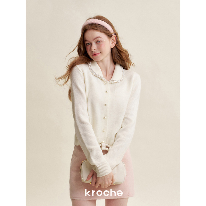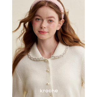 25ss 娃娃领珍珠扣圆领针织开衫 云柔漫步 法式 羊毛混纺 Kroche