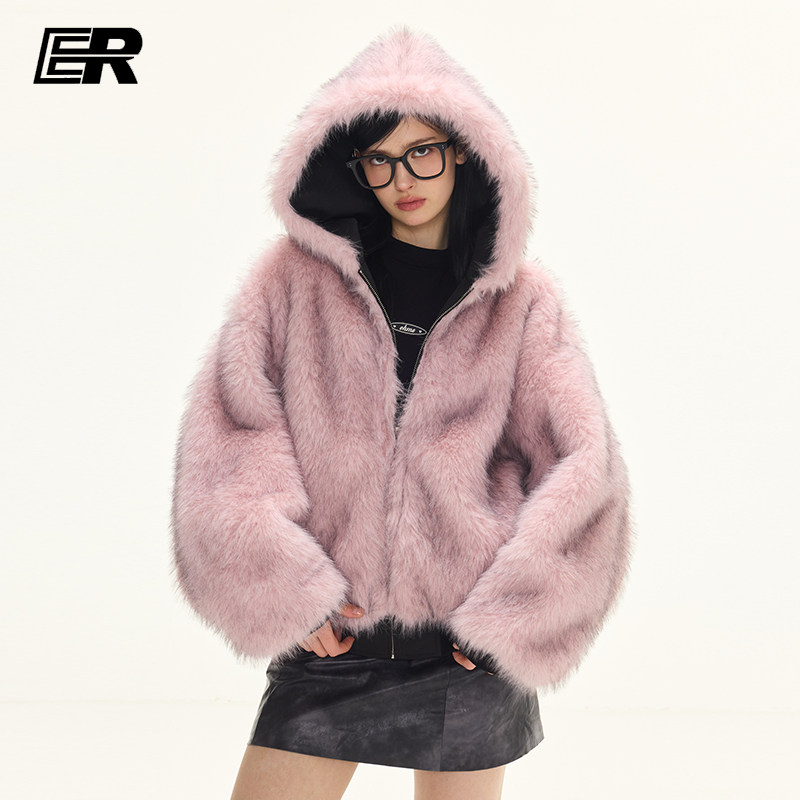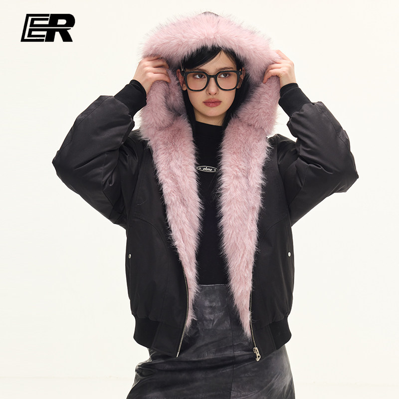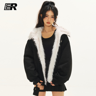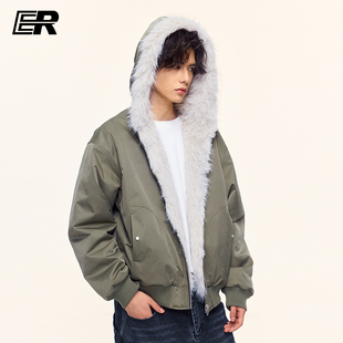 情侣装 ER两面穿座山雕麂皮毛领连帽外套cleanfit美式 明星同款