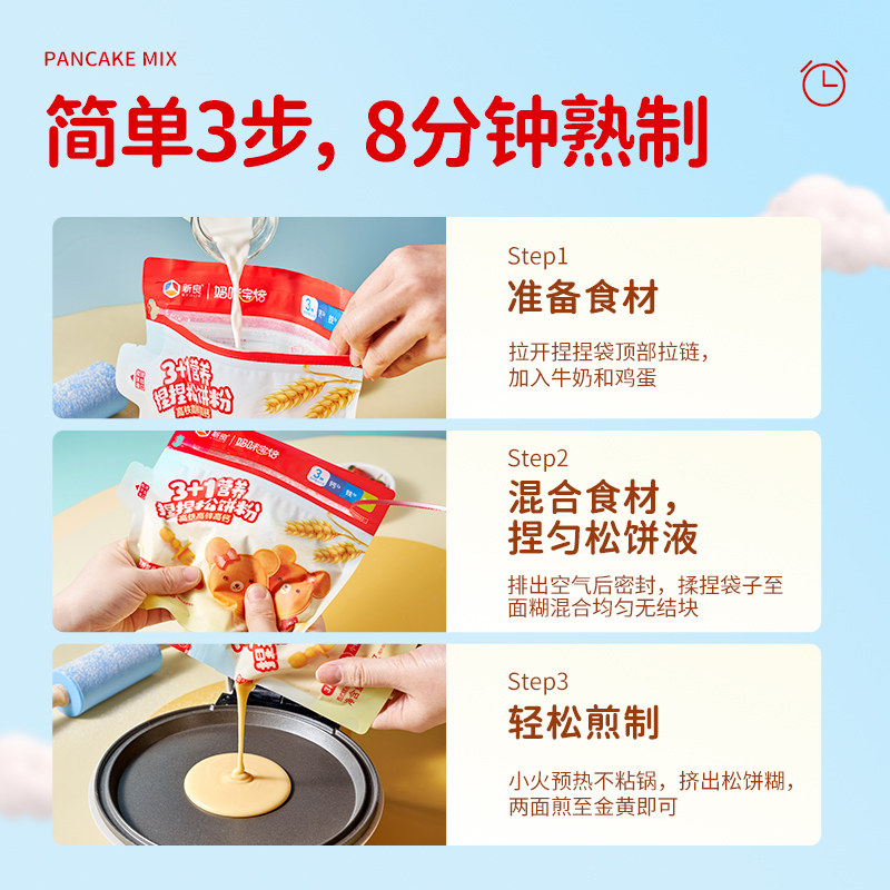 3袋家用烘焙营养早餐鸡蛋仔华夫饼粉 新良捏捏松饼粉100g 百补