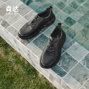 厚底增高真皮休闲商务健步鞋 百丽男鞋 冬季 运动鞋 A1354AM4 加绒棉鞋