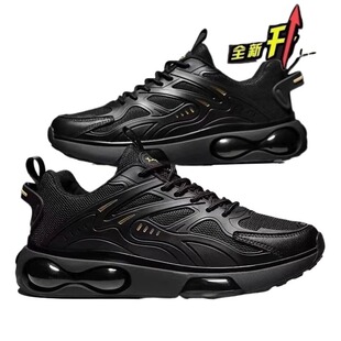 男秋季 增高休闲网面鞋 透气防臭2025新款 男款 跑步鞋 黑色气垫运动鞋