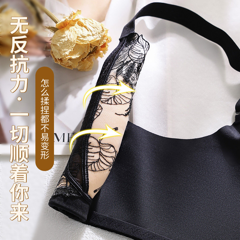好奇蜜斯性感无痕内衣女聚拢小胸显大无钢圈防下垂文胸罩套装 黑薄
