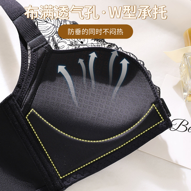 好奇蜜斯大胸显小胸内衣女性感夏薄防下垂法式 纯欲蕾丝文胸罩套装