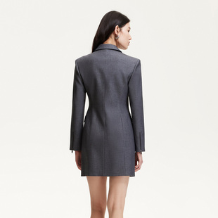 连衣裙女 羊毛混纺时髦poloV领重工百褶针织长袖 SUK 气质加分项