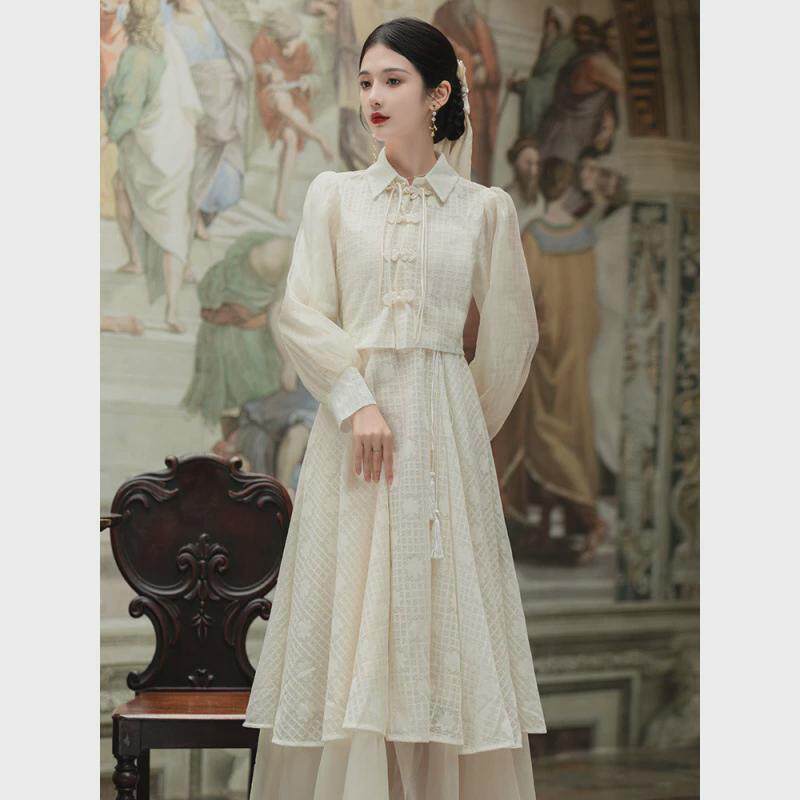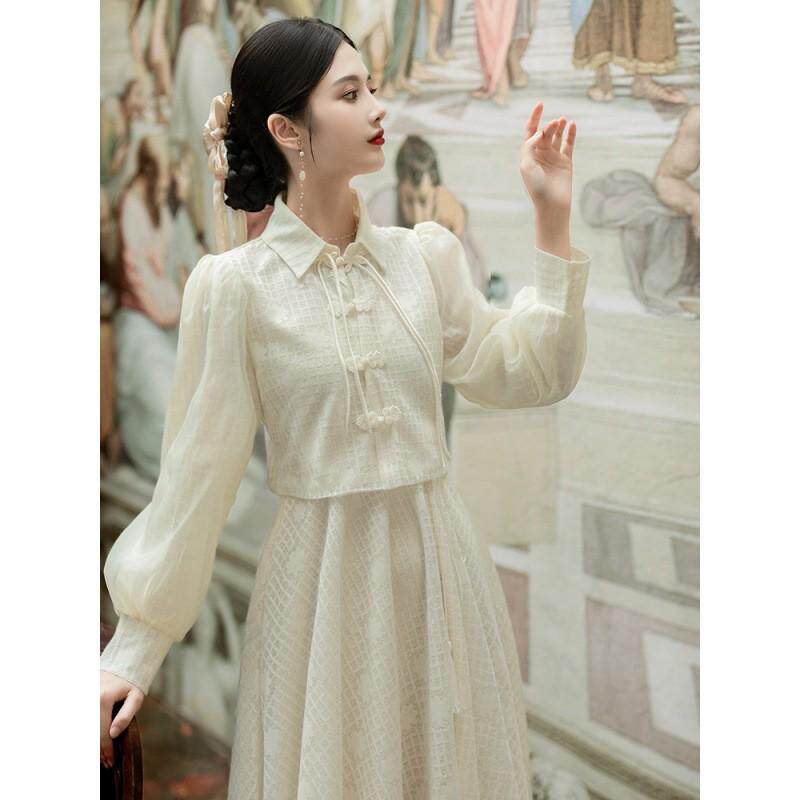 长袖 改良旗袍两件套春年轻款 连衣裙气质 新中式 复古民国风小洋装