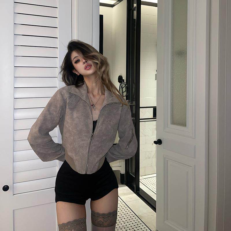 飞行员夹克 上衣外套女春季 PrettyDragon收腰插肩显瘦工装 麂皮短款