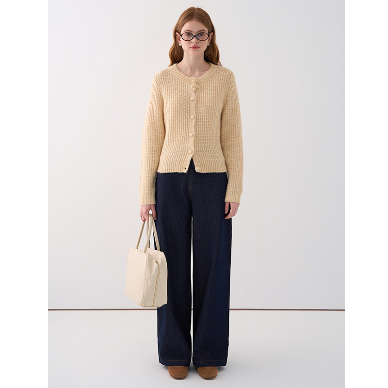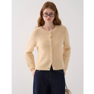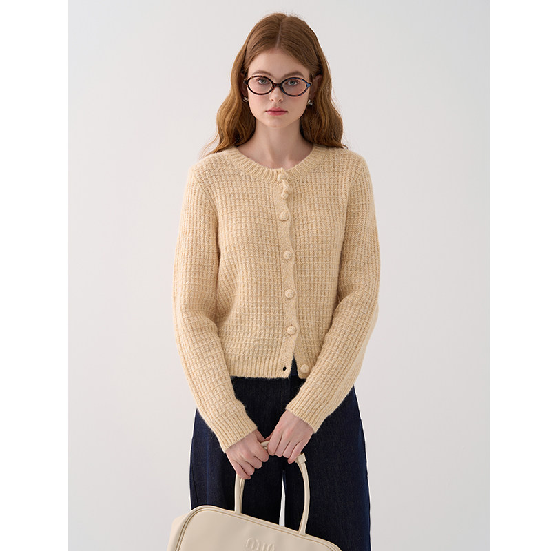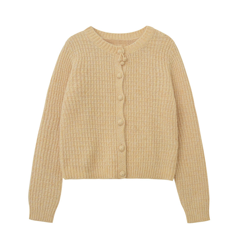 气质百搭毛衣外套 新款 JIUJIU樱桃扣华夫格黄色针织开衫 女2026春季