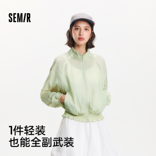 2025新款 夏季 立领撞色夹克 森马外套女花苞上衣凉感女装 防晒外套
