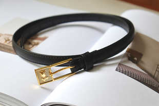 现货Miroment大酒窝明明金色浮雕玫瑰细腰带头层牛皮复古真皮皮带