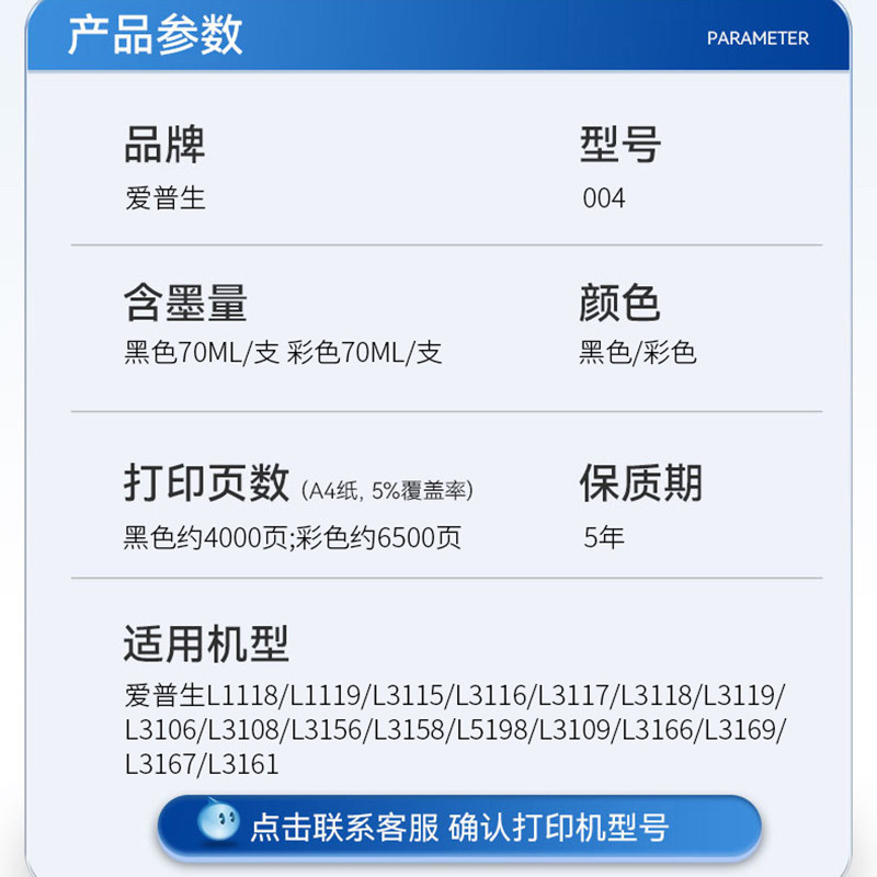 L4267 L4268 L6298喷墨打印机 002原装 L6278 四色墨水适用L4266 L6268 爱普生Epson L6266