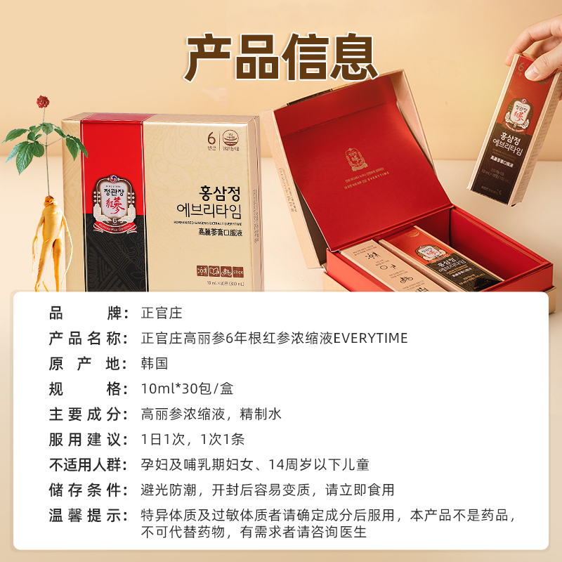 韩国正官庄6年根高丽参ET红参浓缩液补气血人参滋补礼盒至26年6月