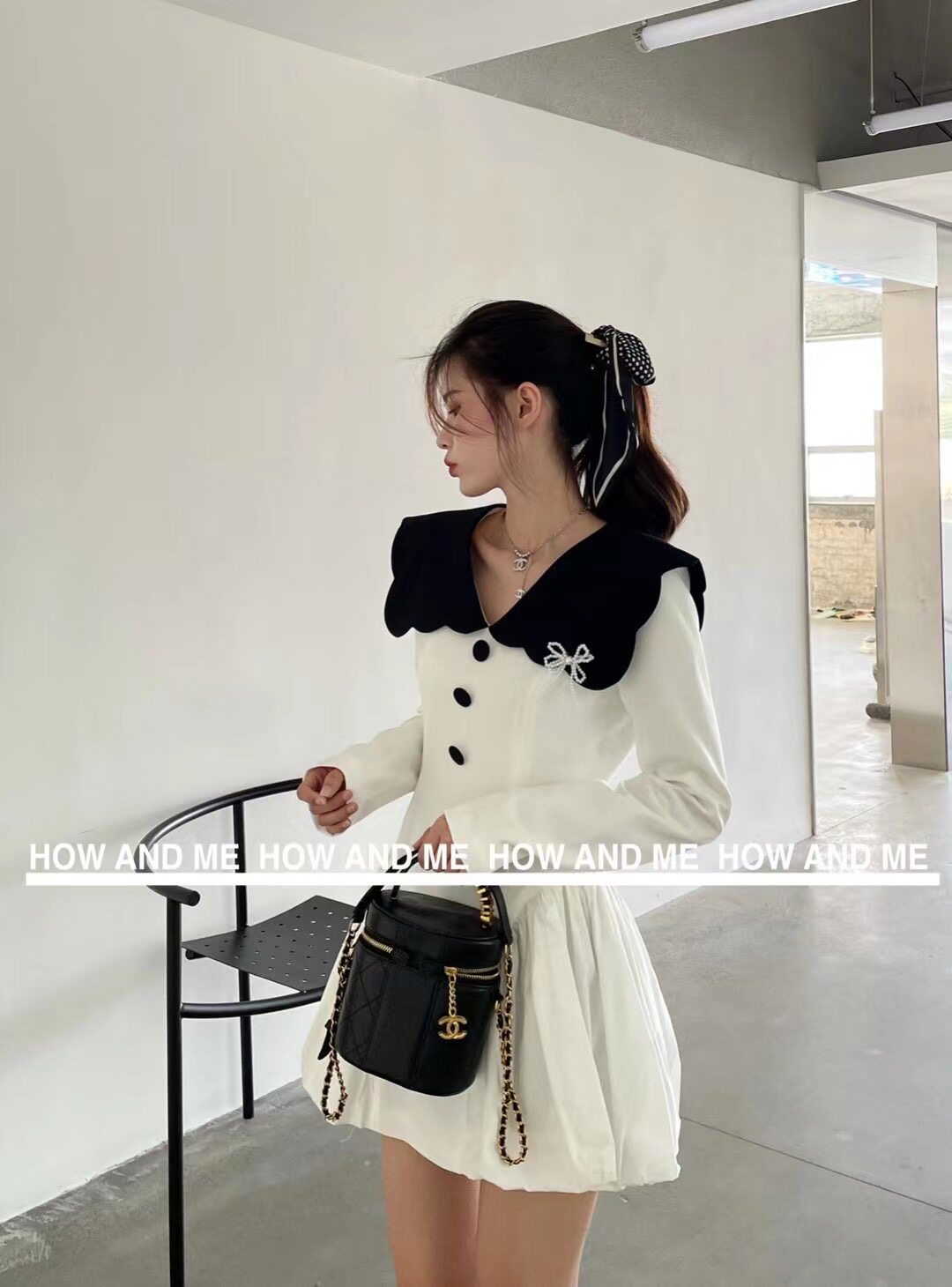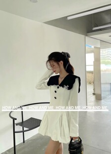 法式 新款 显瘦v领撞色荷叶边领收腰短裙女 连衣裙2026韩国秋季 西装