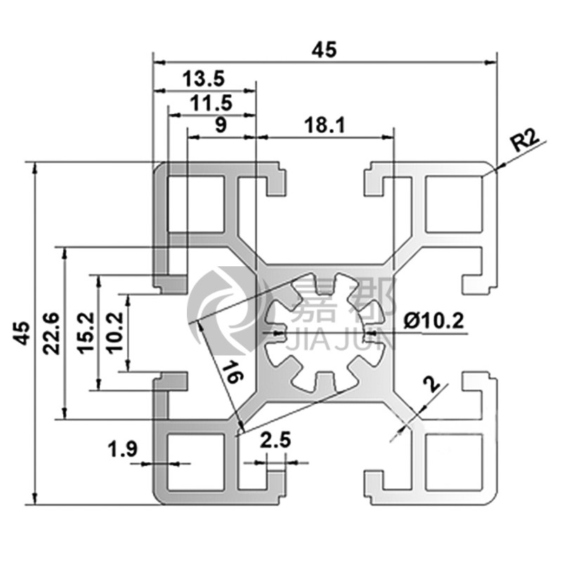 工业铝型材欧标4545磨砂黑铝合金型材方管框架流水线工作台铝配件