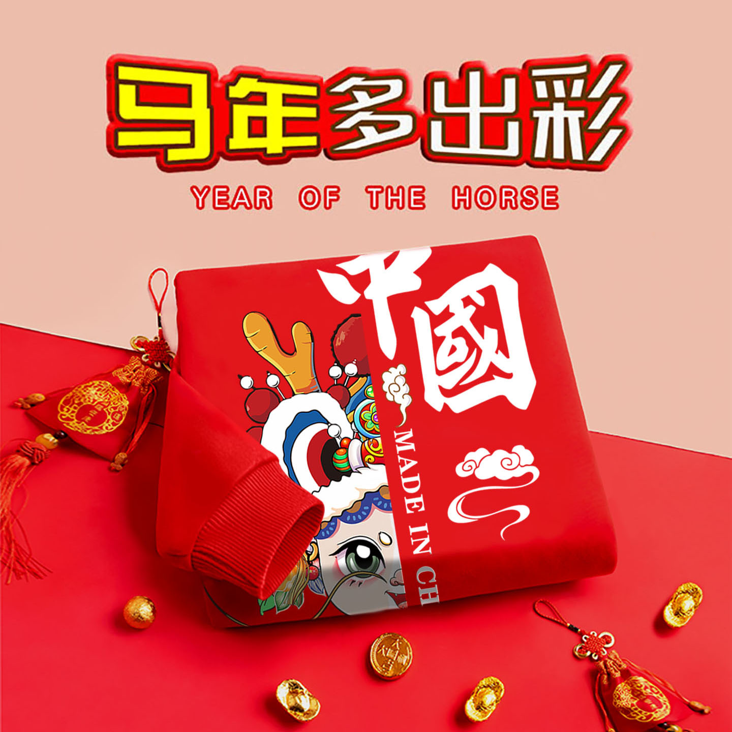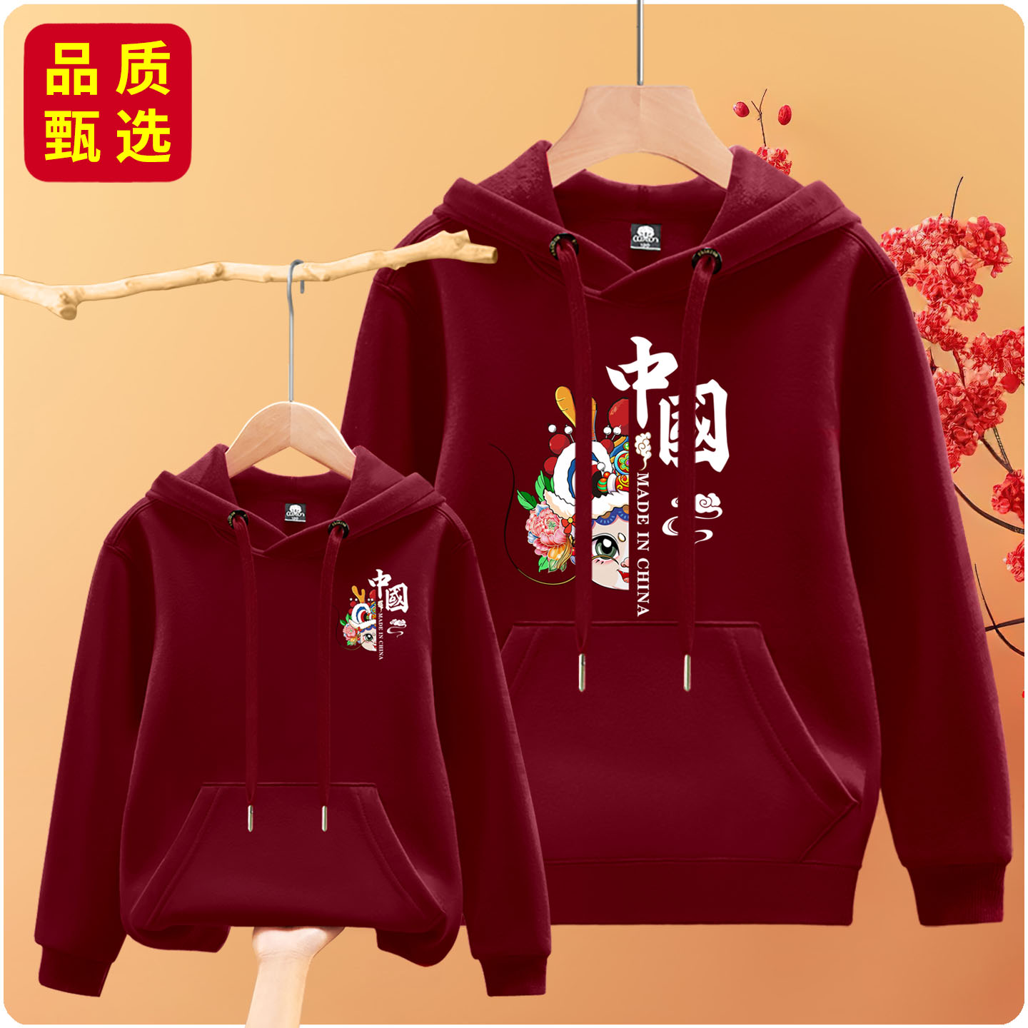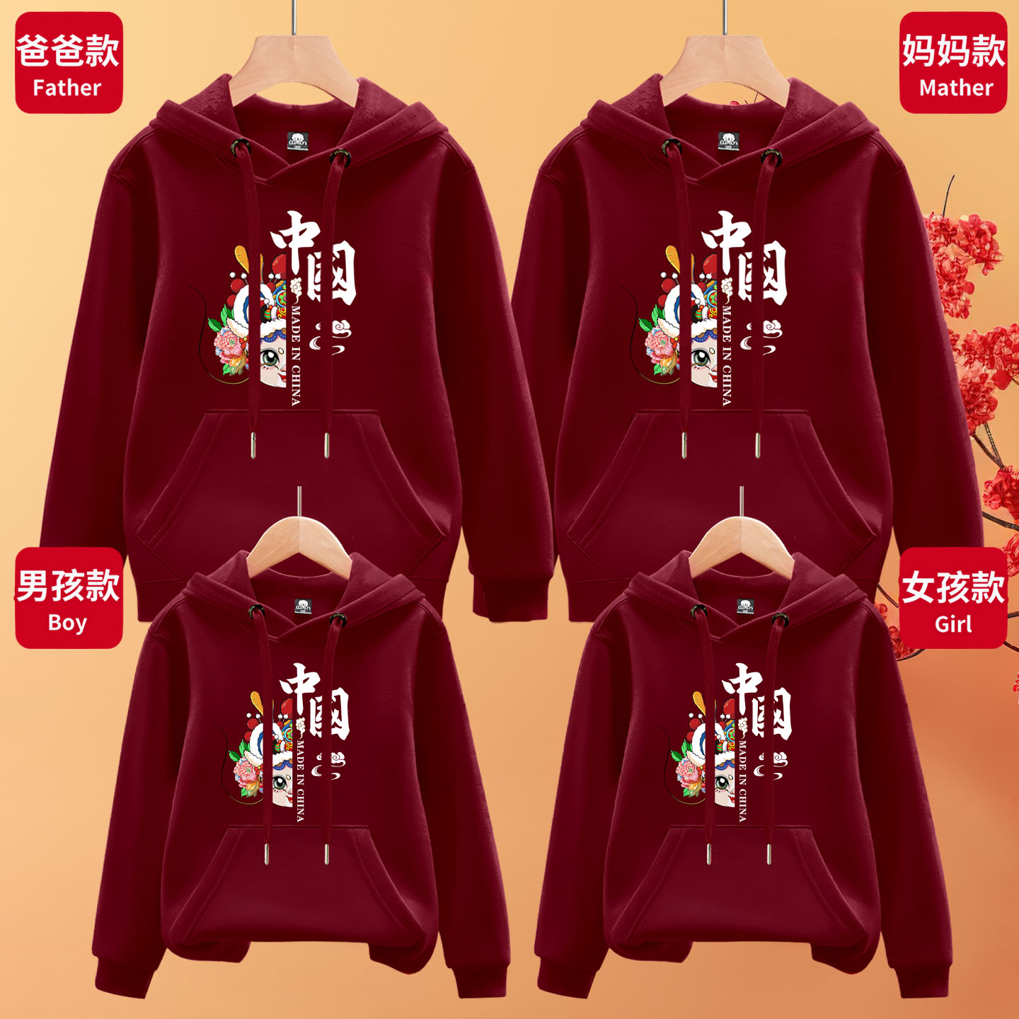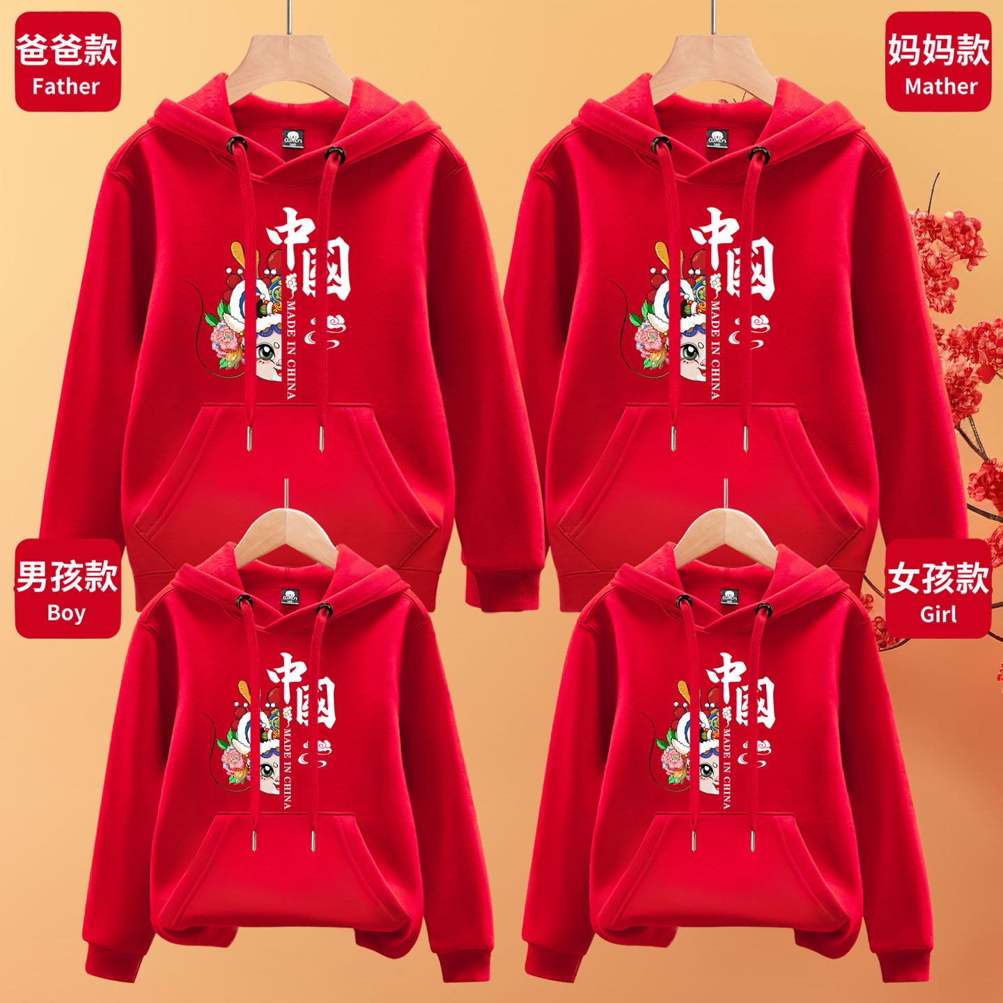 全家福男女宝同款 旦红色亲子装 可定制 卫衣元 秋冬上新纯棉重磅帽衫