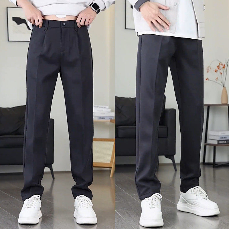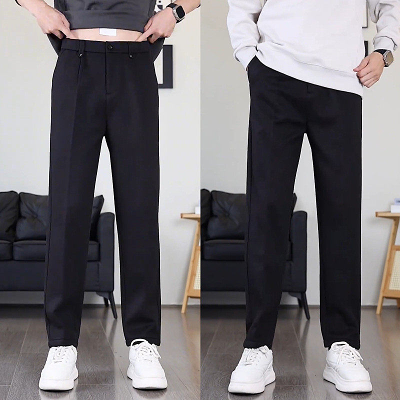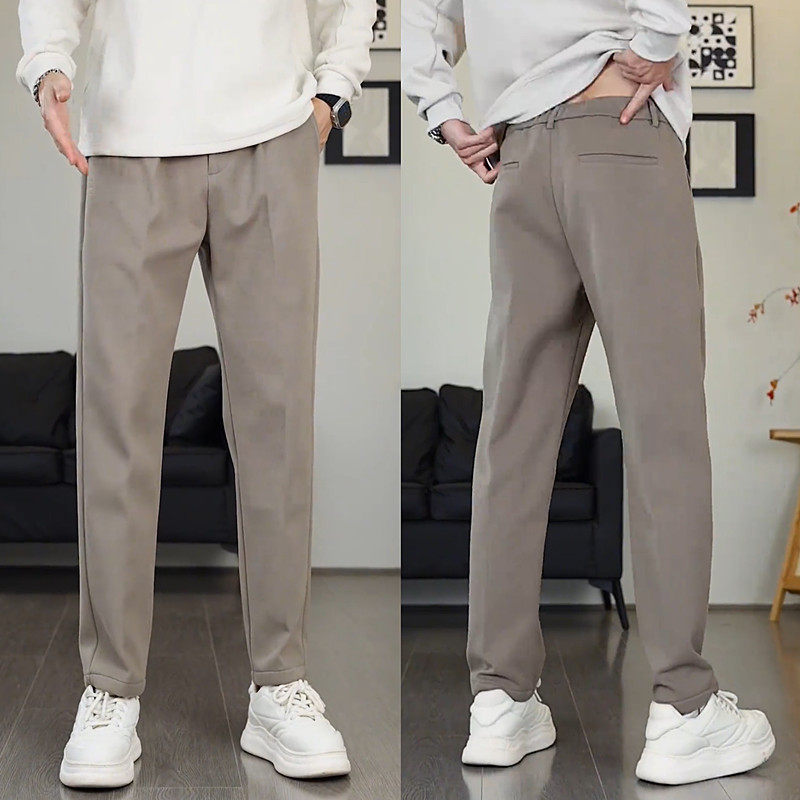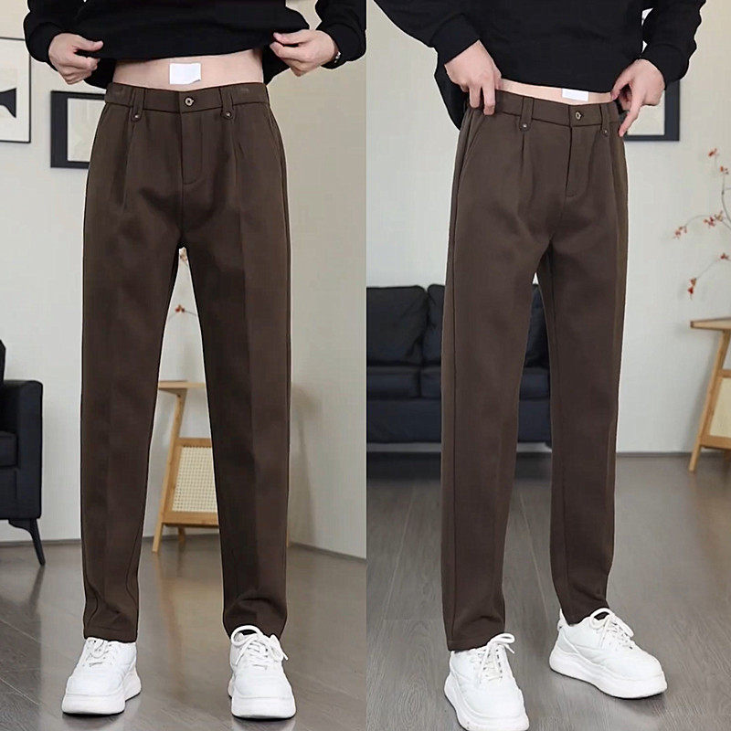 高档简约百搭显瘦抗皱小脚长裤 男士 加厚毛呢休闲直筒西裤 秋冬新款