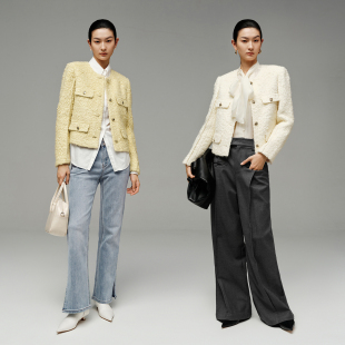 31021023 新品 ARIOSEYEARS小香风绵羊毛年会聚会短款 外套女春季