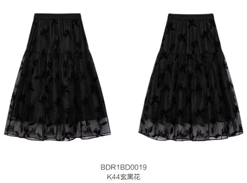 衣播商场女装 蓬蓬纱裙温柔植绒半身裙BDR1BD0019朵朵乌云 新中式