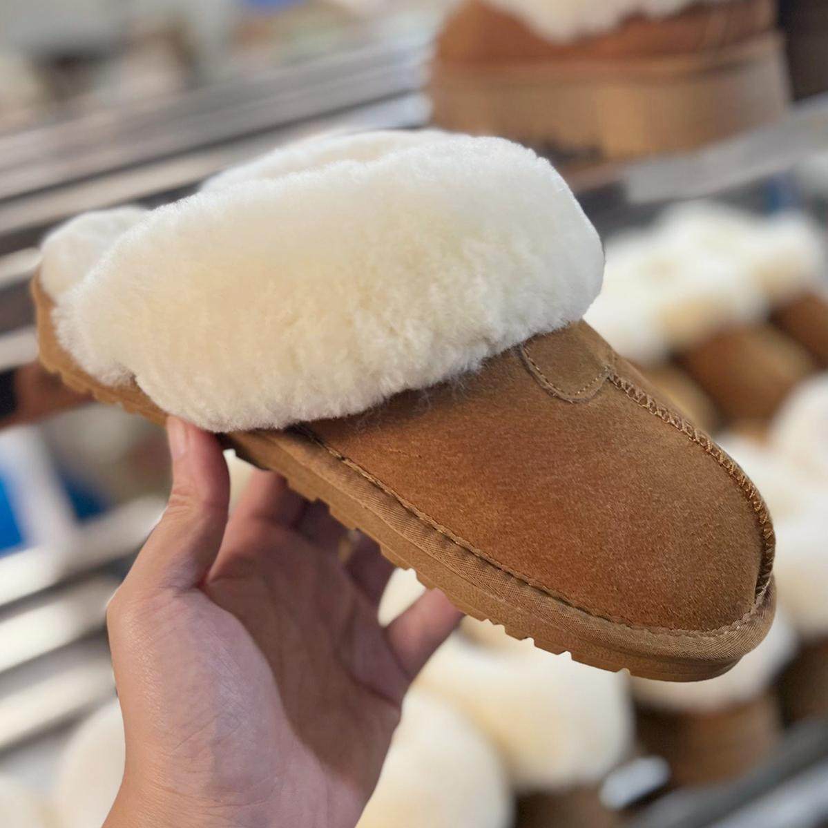 厚底博肯懒人鞋 男女真牛皮毛毛鞋 包头拖一脚蹬 加绒软木勃肯鞋 大码