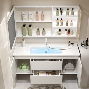 奶油风浴室柜组合陶瓷一体实木现代简约卫生间洗漱台洗手洗脸盆柜