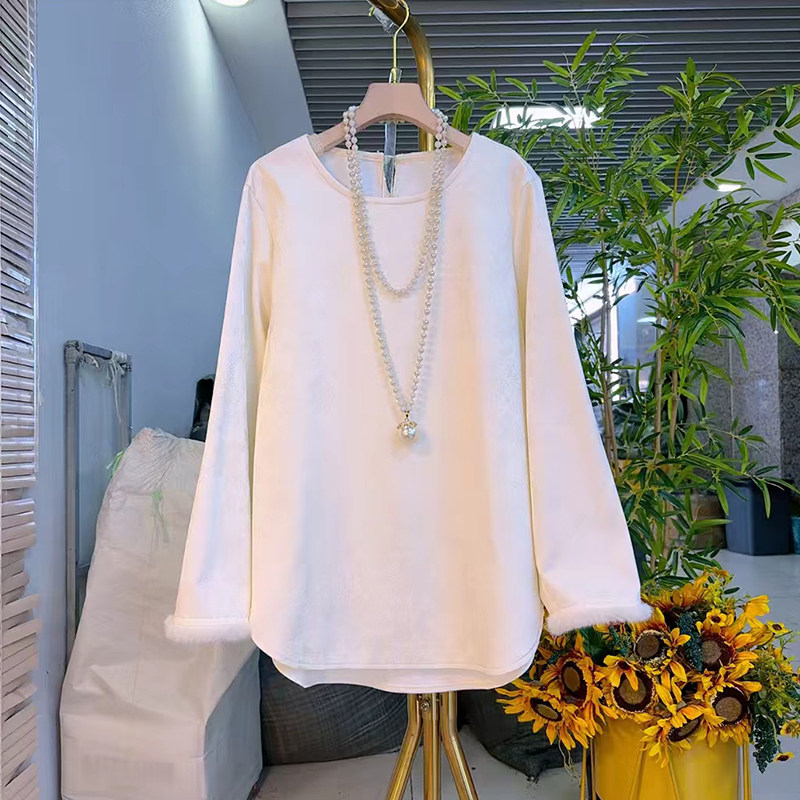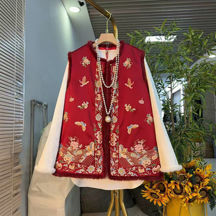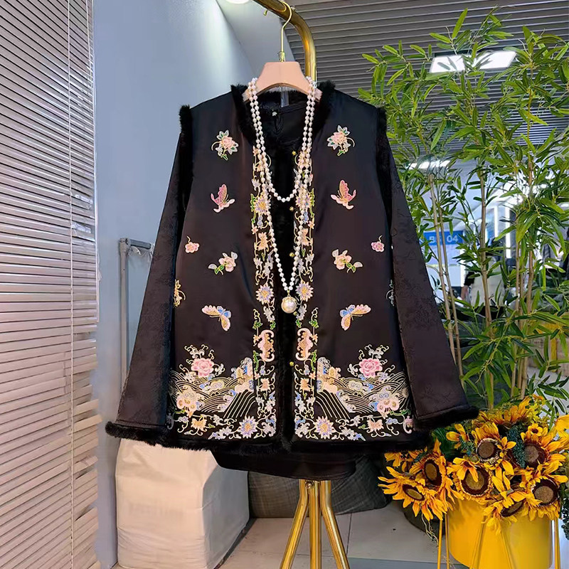 女装 小衫 蝴蝶花朵国风棉马甲胖妹妹法式 口长袖 设计感毛边袖 加大码