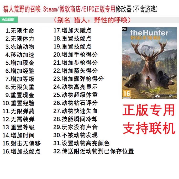 33项修改器 野性 召唤 猎人 STEAM 呼唤 支持 EPIC联机 荒野