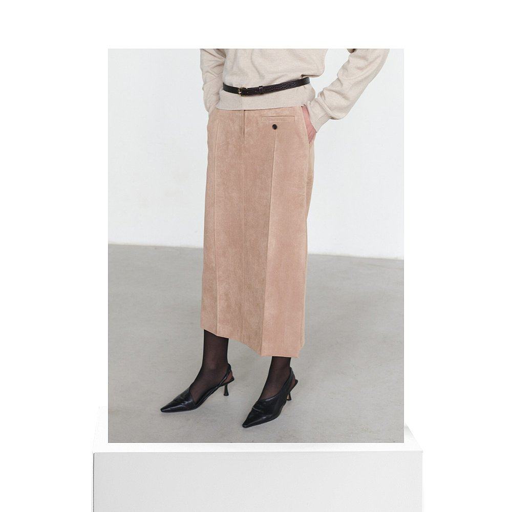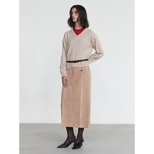 开叉醋酸毛呢半身裙女秋冬绵羊毛直筒裙中长款 棕色加绒加厚一步裙