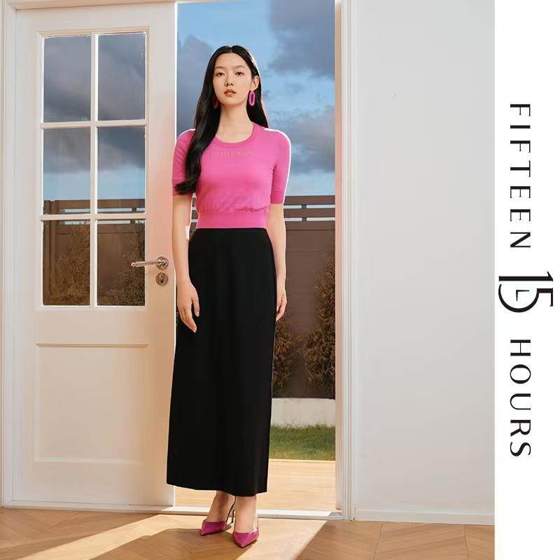 新款 ...半身裙女2026春季 纯色垂坠休闲针织直筒裙580066 and niko