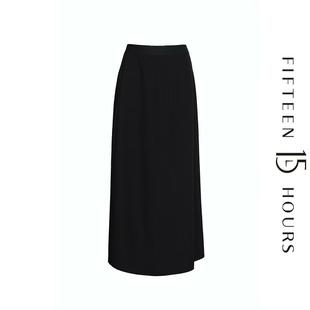 半身裙女胖妹妹高腰mm显瘦后开叉直筒长裙 黑色毛呢款 巨好看 大码