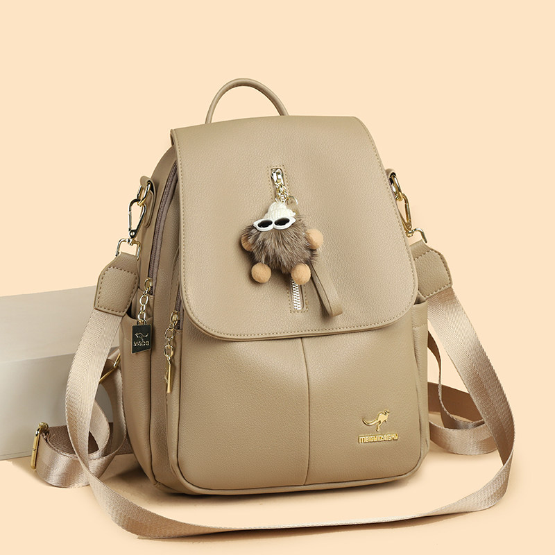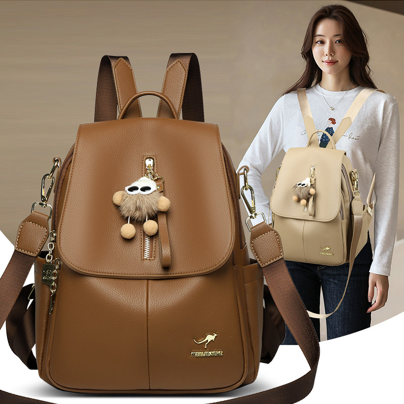品牌袋鼠真皮双肩包女2026新款 旅行背包大容量妈妈包软皮 百搭时尚