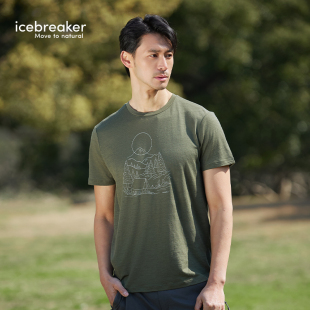 徒步出行系列 Lite印花速干T短袖 icebreaker美利奴羊毛男150 Tech