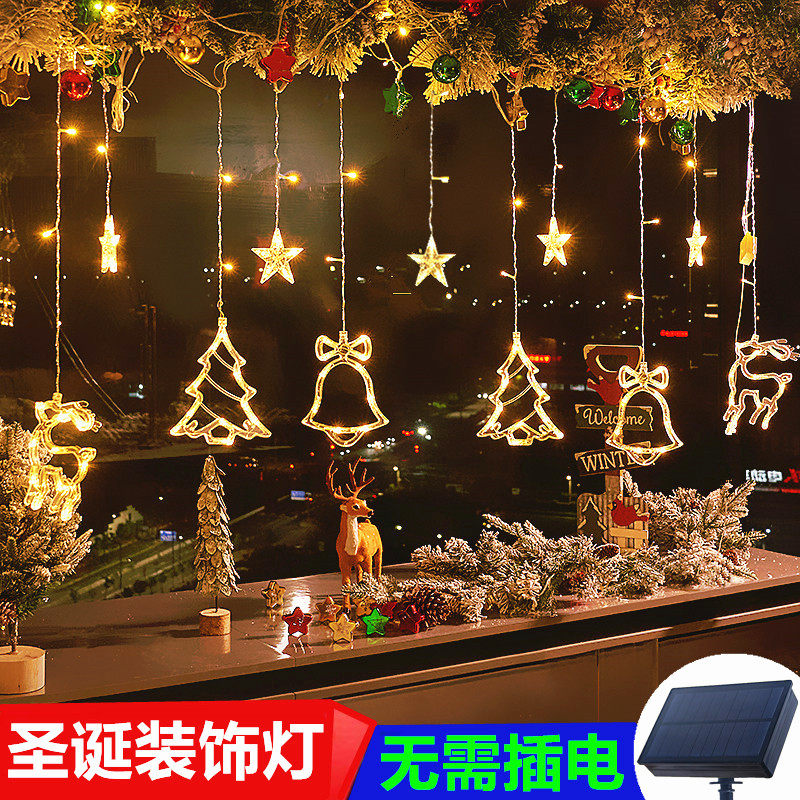 圣诞节装 饰灯饰led窗帘灯挂灯太阳能彩灯星星灯串户外氛围灯布置