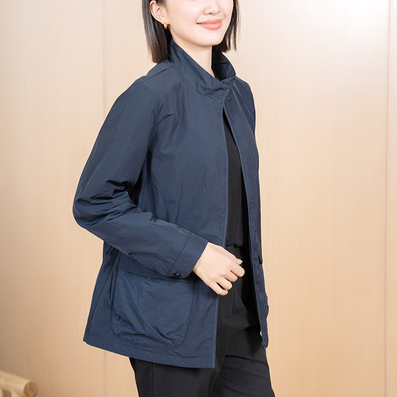 YUN韫2024冬新款 夹棉大口袋拉链收腰风衣外套15052 女立领重工韩版