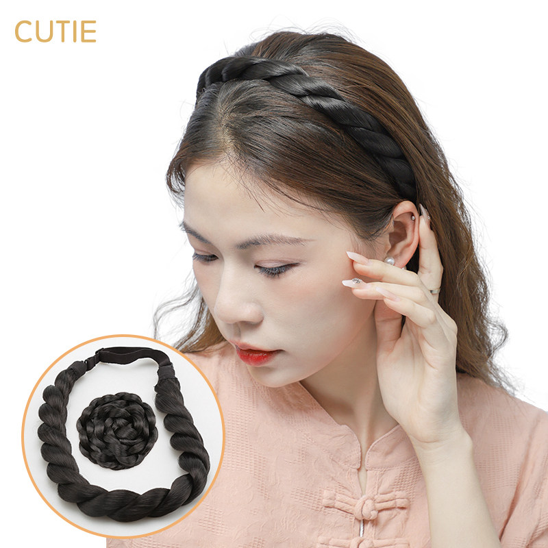 日韩版 发箍 复古风发饰品甜美 手工粗辫子森女系发带式 娇滴滴假发
