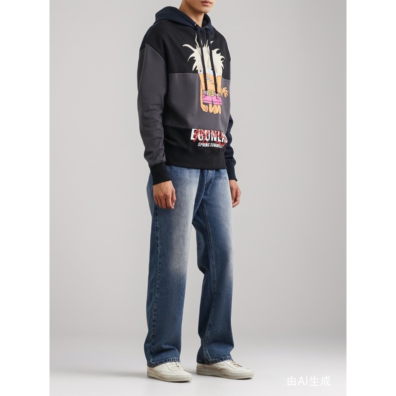 男印花拼色棉质连帽卫衣 EGONLAB 折扣再降
