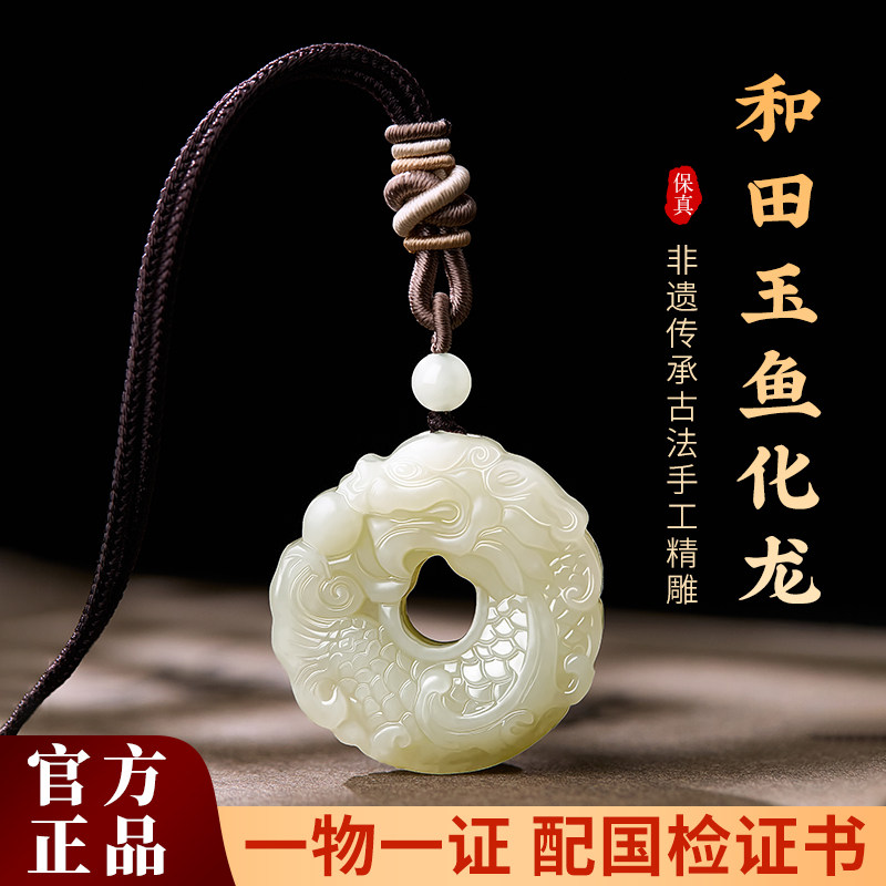 听泉同款 鱼化龙吊坠天然和田玉玉石项链男女本命年护身符挂件 正品