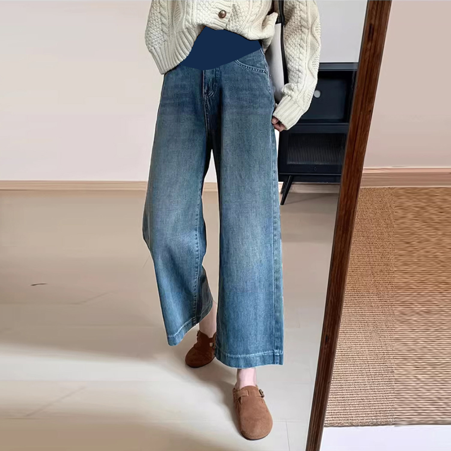 外穿春夏季 孕期不勒肚子裤 薄款 2026新款 子 春装 孕妇九分阔腿牛仔裤