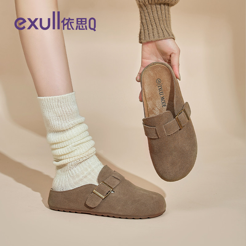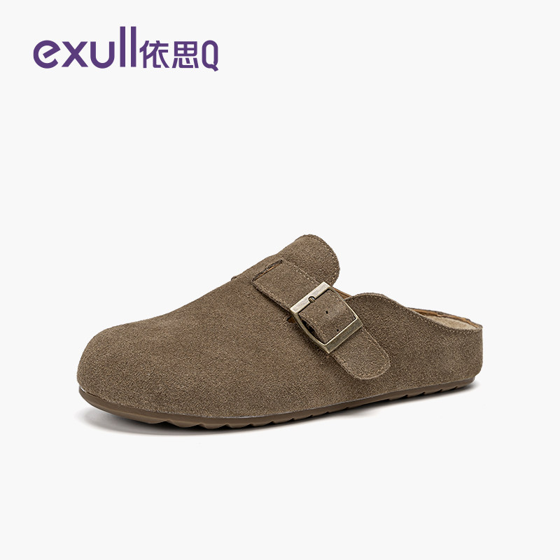 懒人一脚蹬博肯鞋 依思q真皮勃肯鞋 春季 女外穿2026新款 包头半拖鞋