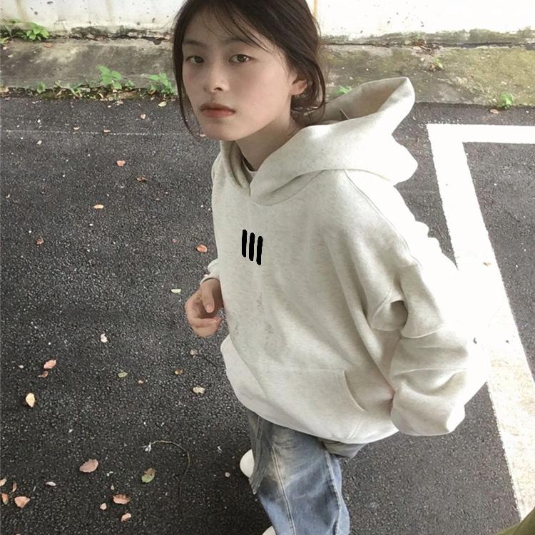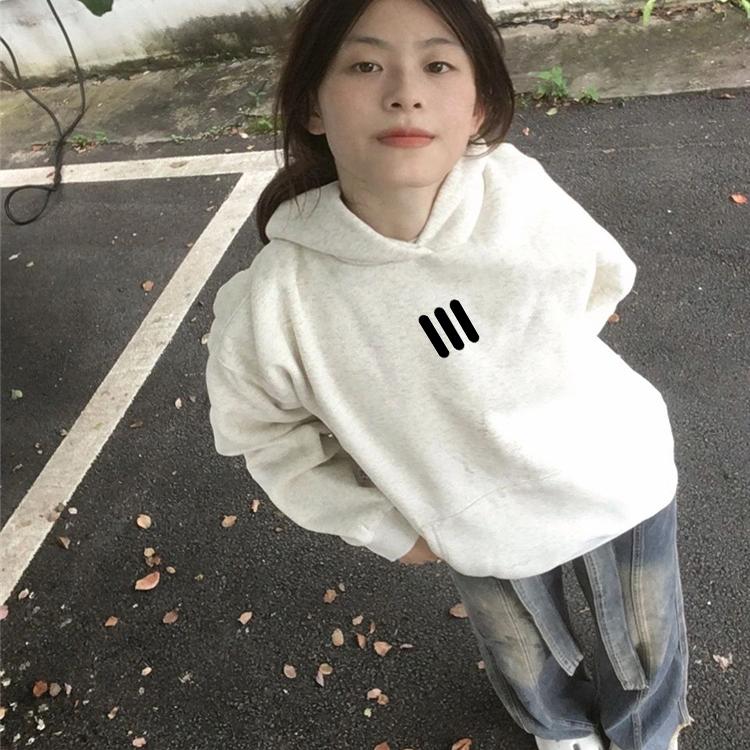 加厚外套 宽松大码 纯棉潮牌复古花灰色连帽卫衣女秋冬2024新款 爆款